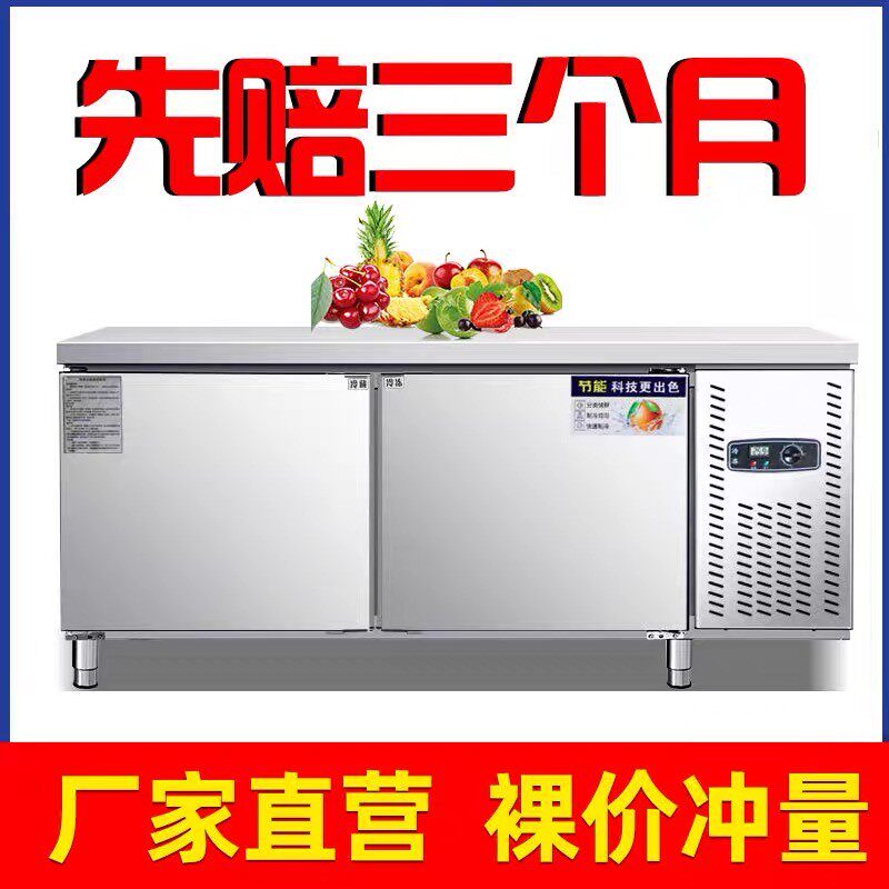 Refrigerated workbench freezer operation table refrigerator commercial horizontal freezer milk tea shop stainless steel freezer fresh-keeping cabinet