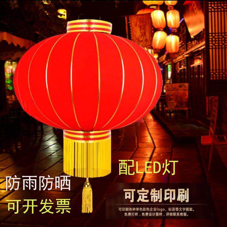 Outdoor large red lantern with LED light Rain-proof sunscreen New Year festive outdoor large doorway hanging flocking advertising print words