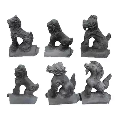 Antique five crest six beasts clay green tiles ancient building roof temple decoration kiss beast cornices beefed feet Baoding positive kiss