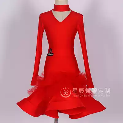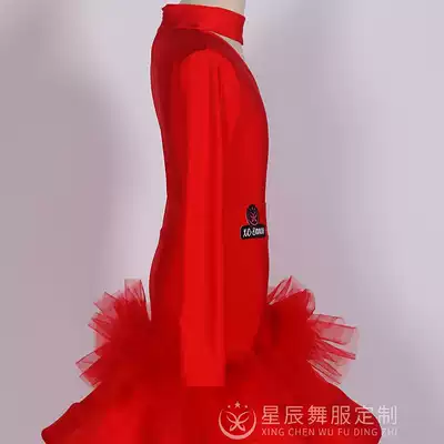 Star dance dress girl Latin dress costume red lace mesh dress with the same stage stage eye