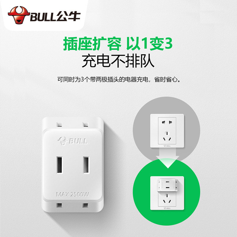 Bull two-pin socket converter 2 pin one turn three two hole plug one drag three 3 mini expansion plug adapter