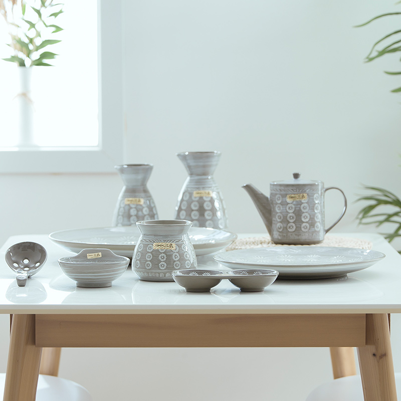 Mishima Ceramic Pot Large Mishima Ceramic Pot Small Mishima Small Bowl Mishima Wine Cup Large Mishima Wine Cup Medium Mishima Teapot Large Mishima Teapot Medium Mishima Dinner Plate Large Mishima Dinner Plate Medium Mishima big plate three