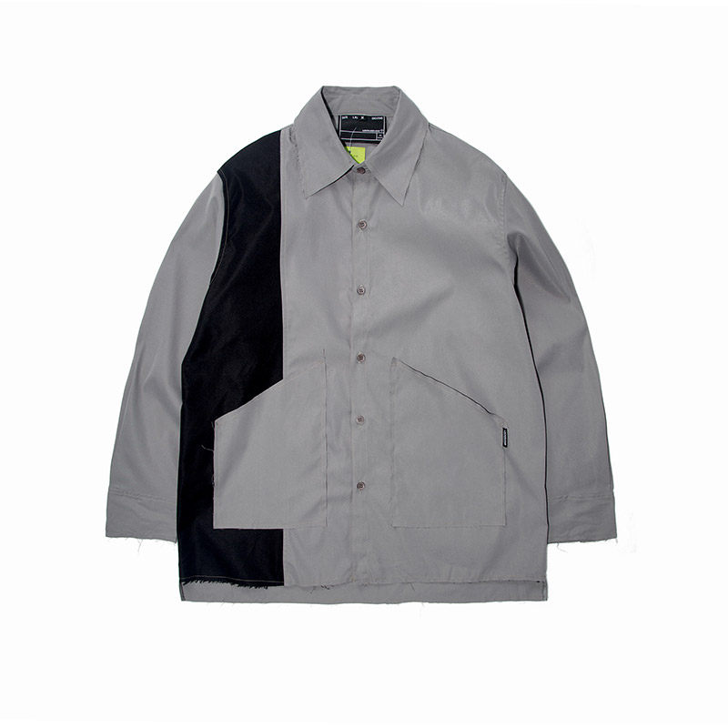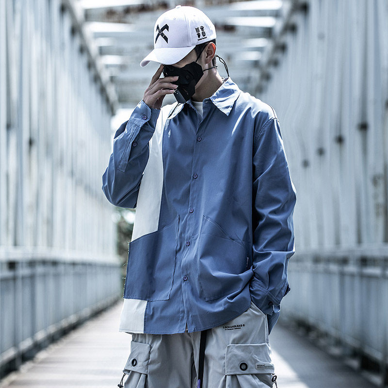 Xiaobin Tide Fall Shirt Man Outside Wearing Loose Tide Sign trendy splicing Coloured clothes Long sleeves Overalls Lining Clothing Tide