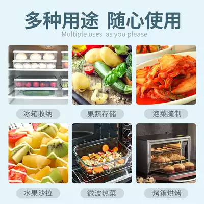 Large glass crisper large rectangular sealed box microwave oven special refrigerator storage box Kimchi box