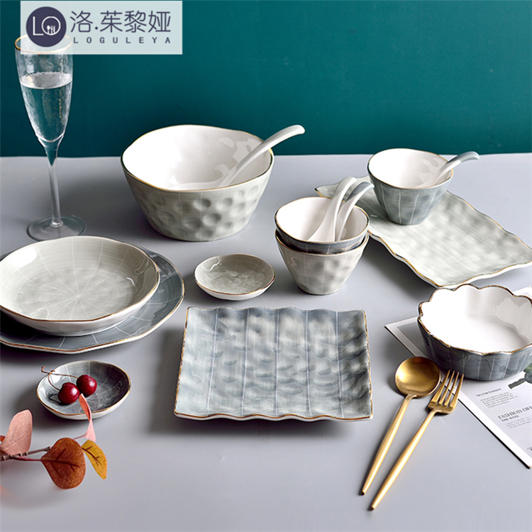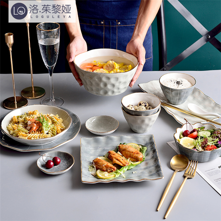 LO GULEYA Ceramic bowl plate Phnom Penh tableware Soup bowl instant noodle bowl Single net red ins rice bowl chopsticks dish Household