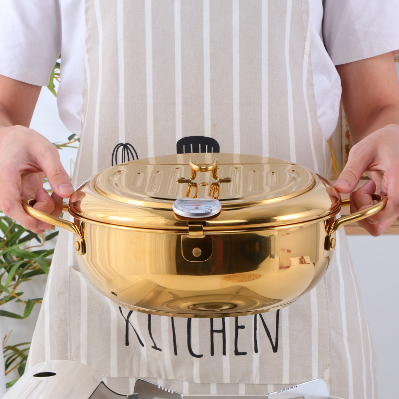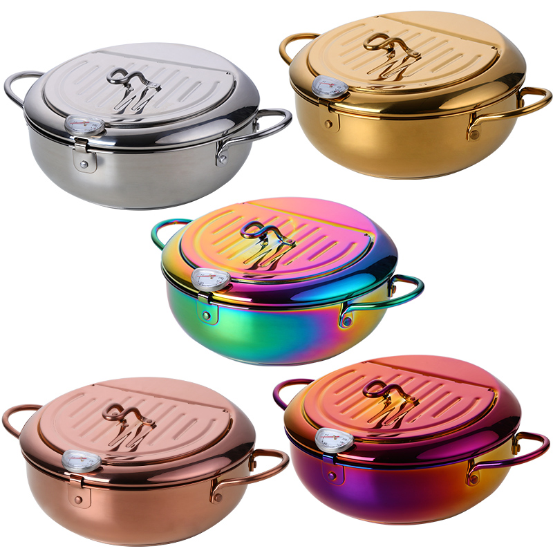 Japanese stainless steel fryer small household mini fryer uncoated frying pan