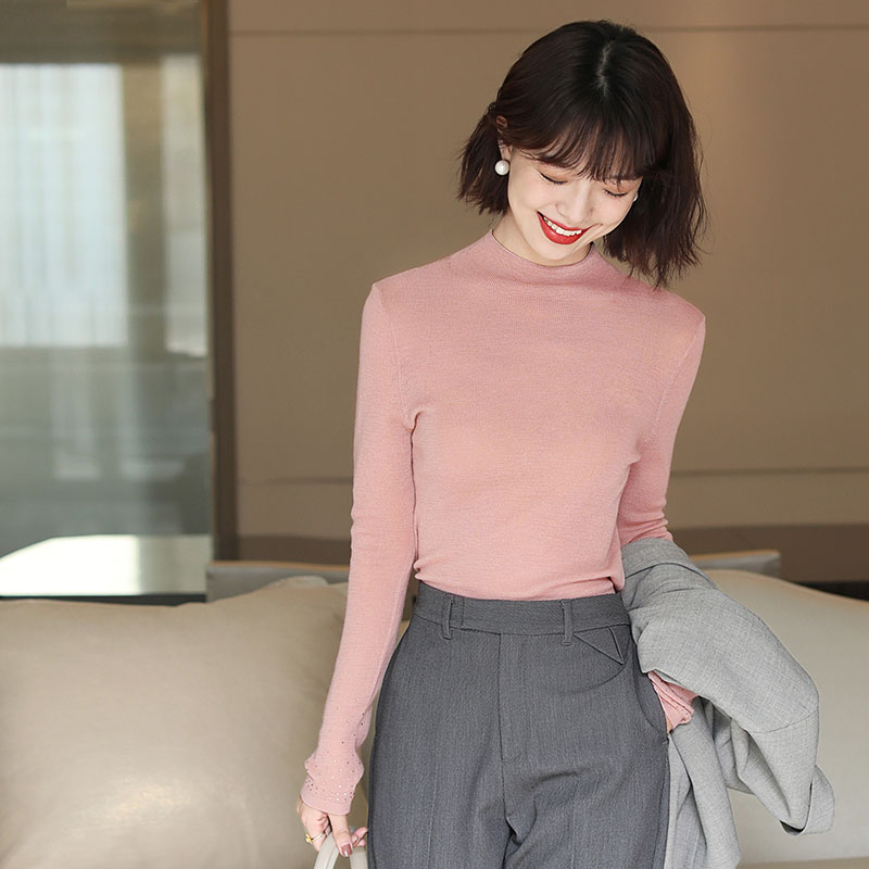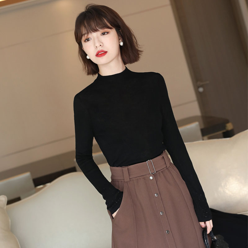 JOLIMENT Semi-high collar Long sleeves wool knit cardiovert 2020 fall new inset with undershirt blouse