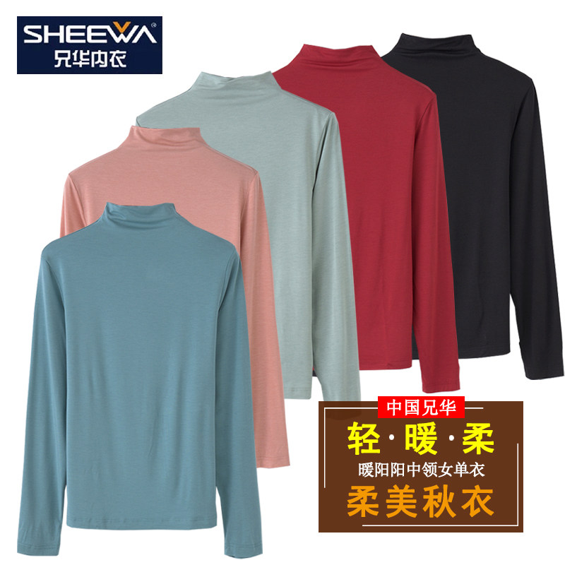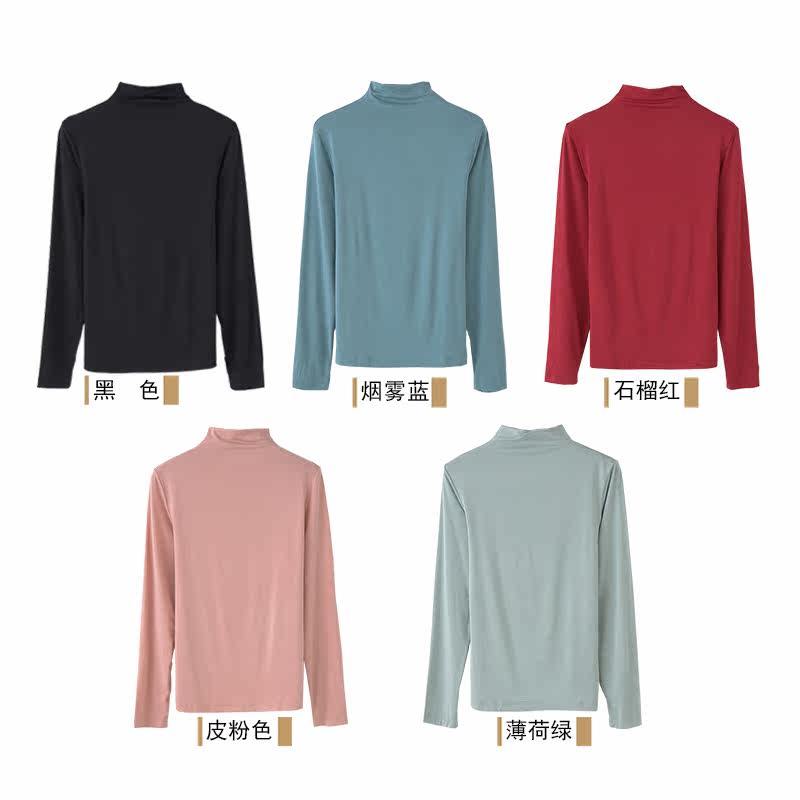 Brother Hua Qiuyi female modal cotton semi-high collar outer wear single top thin section long-sleeved all-match bottoming shirt female 98202