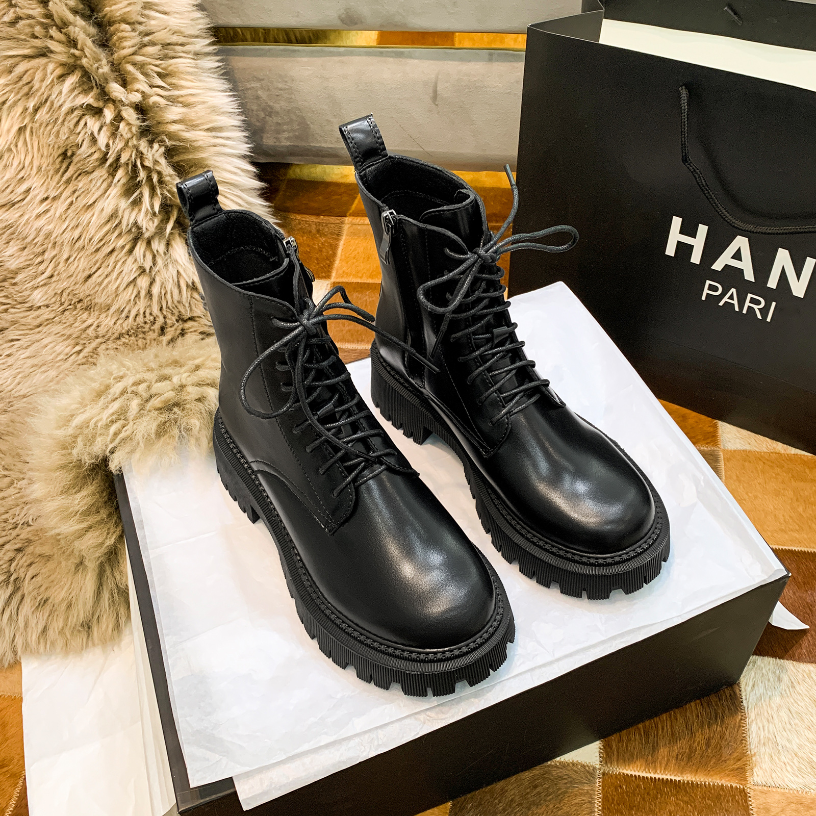 Martin boots female Inron wind thick bottom 100 lap slim short boots 2023 new autumn and winter locomotive slim boots with surge-Taobao