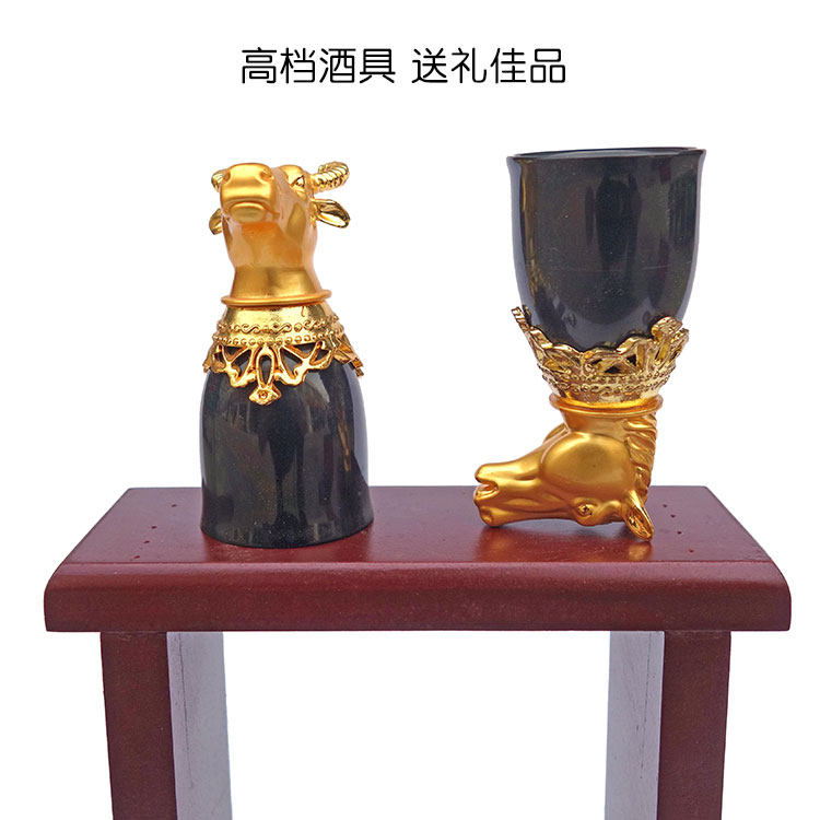 Ink Jade Decorated Wine Glass Natural Jade Tea Cup Duozodiac Creative Personality Suit Home Liquor Retro Chinese Style