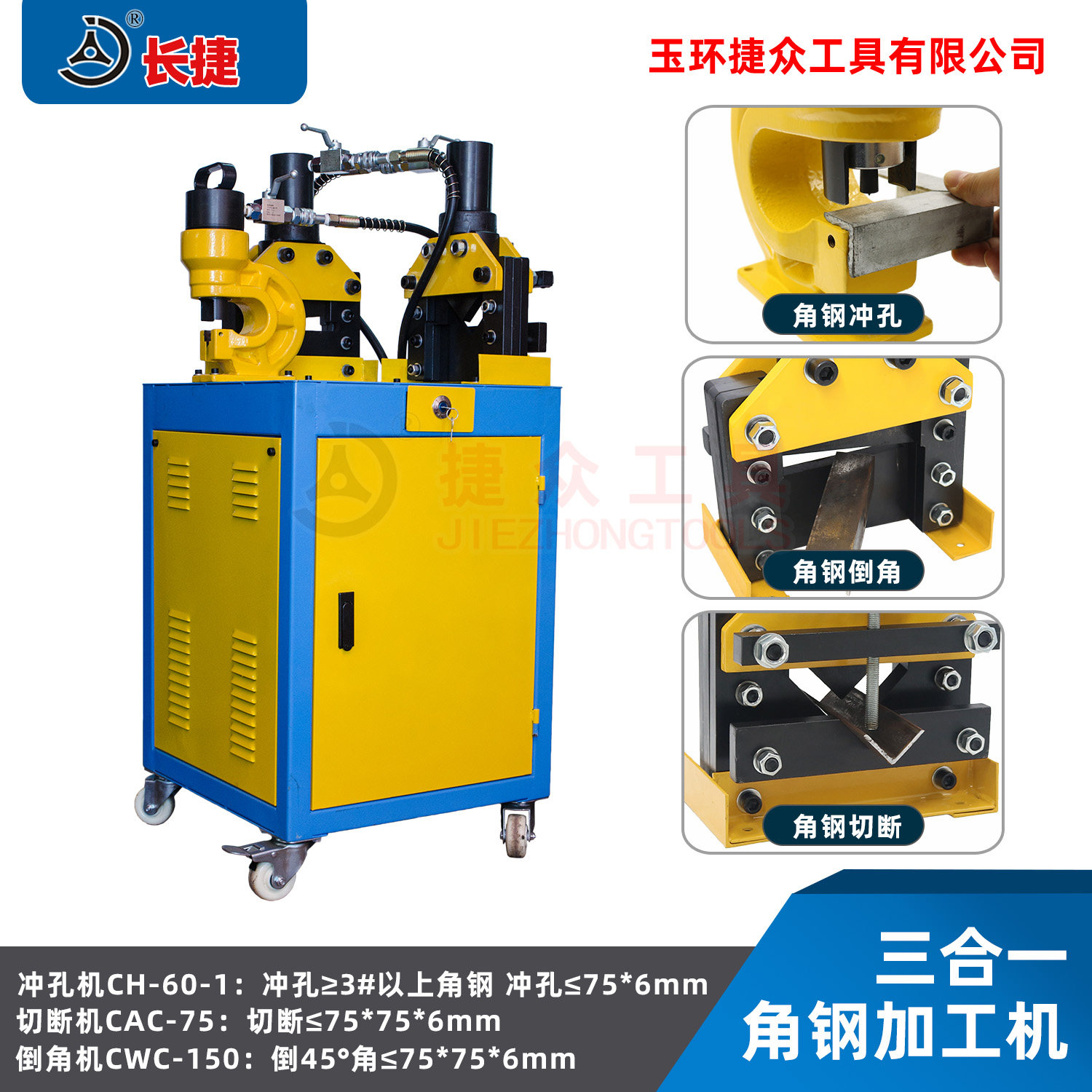 Changjie brand angle iron processing combination machine Punching and cutting inverted 45 degree angle three-in-one angle steel processing All