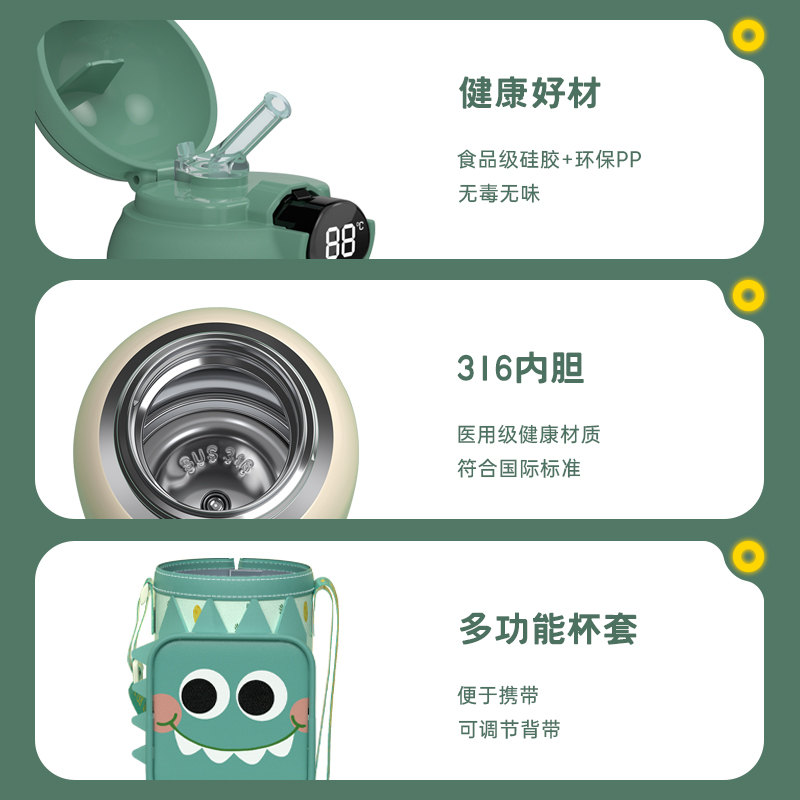 Intelligent 316 insulated cup children with straw water glass large capacity male and female double-purpose baby boy anti-fall kettle