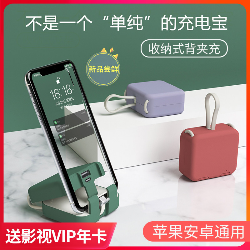 Folding back clip mobile charging with its own line suitable for Apple ultra-thin compact portable mini handbag girls small ip14 creative multi-function Huawei Xiaomi mobile phone dedicated 13 all-in-one charging 12