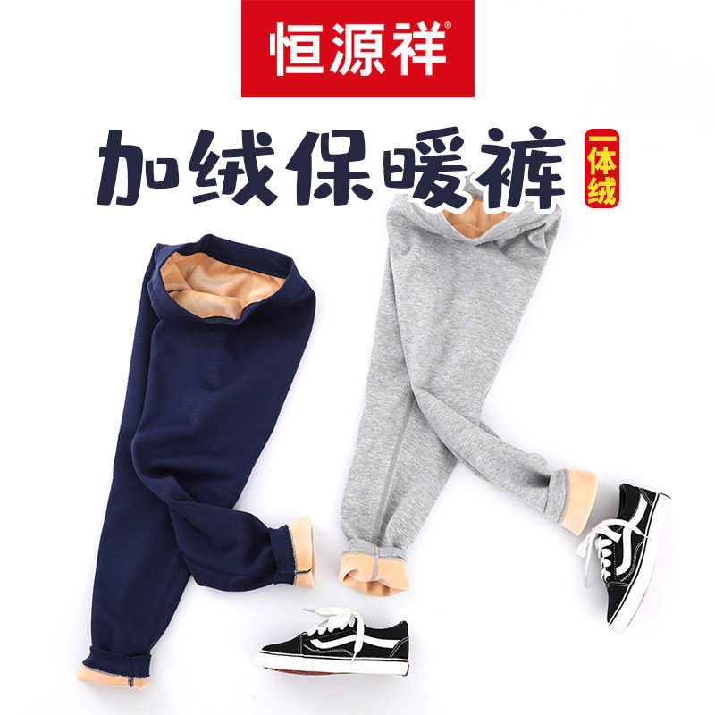 Hang Yuanxiang boys' warm pants one-piece velvet plus velvet pants thick sanitary pants inner wear big kids boys children cotton pants men