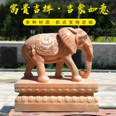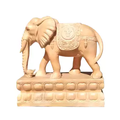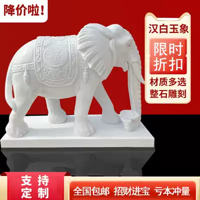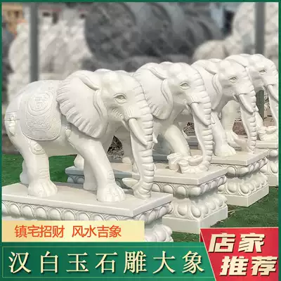 Stone carving elephants a pair of white marble home Zhaocai Town House Hotel Evening Red Fengshui Stone Statues