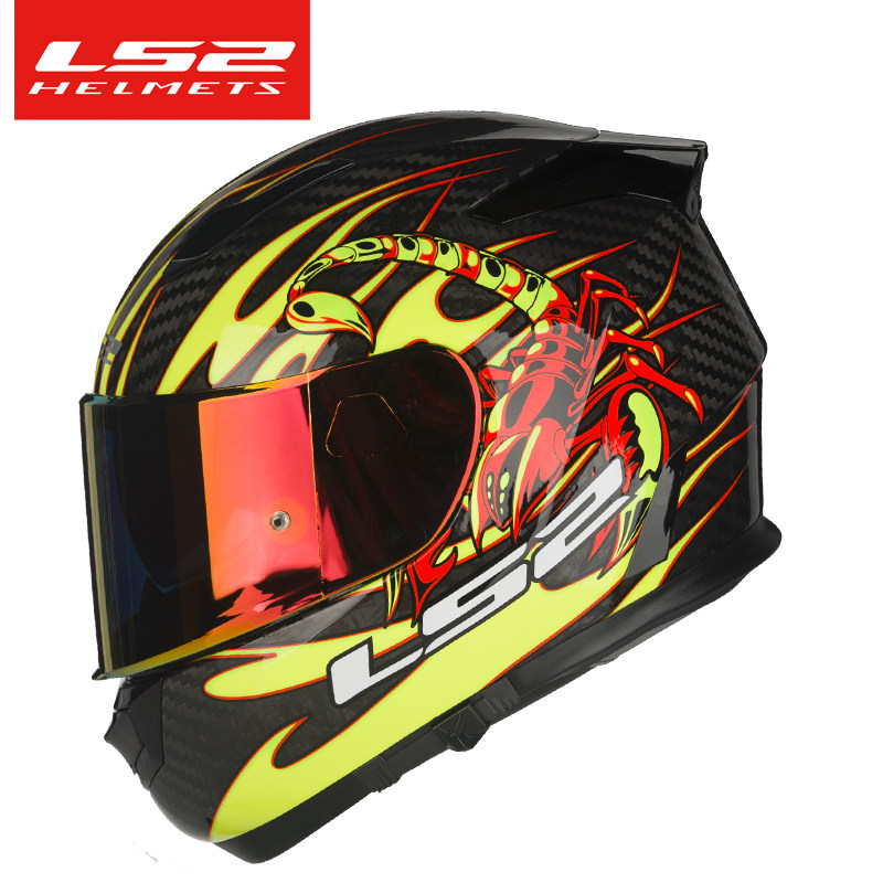 2020 new products LS2 Carbon fiber safety helmet Male locomotive Locomotive Racing Anti-Fog Full Armor double lenses running armor FF801