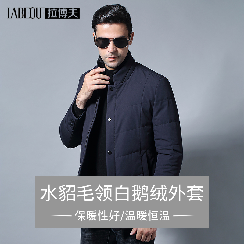 LaBeouf Down Jacket Men's 2021 Middle-aged Men's Mink Fur Collar White Goose Down Dad's Business Easy Care Jacket