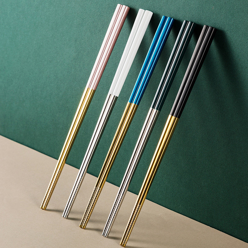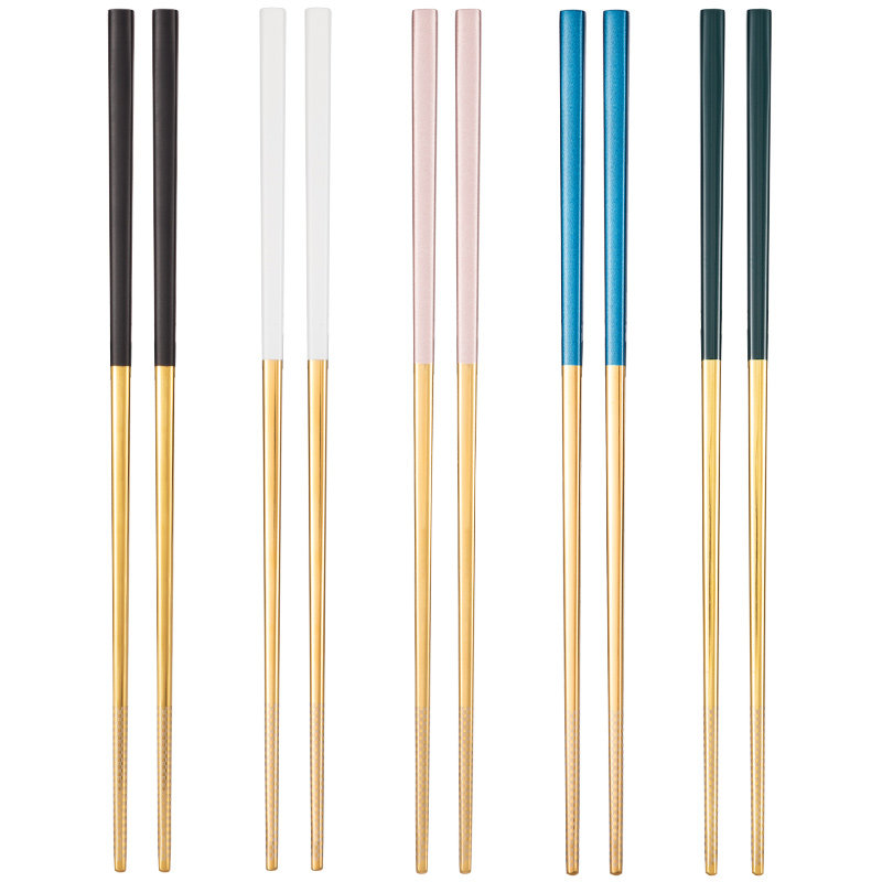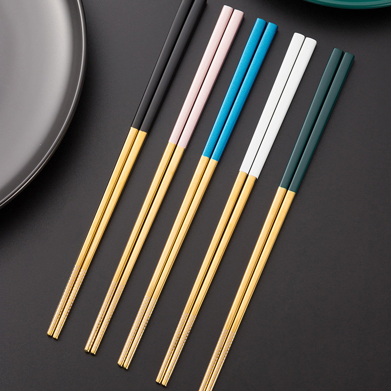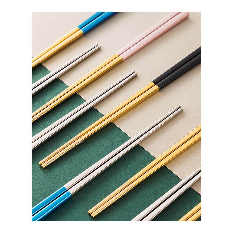 Net red 304 stainless steel chopsticks household high-grade Nordic light luxury wind non-slip anti-mildew resistant high temperature couple two pairs
