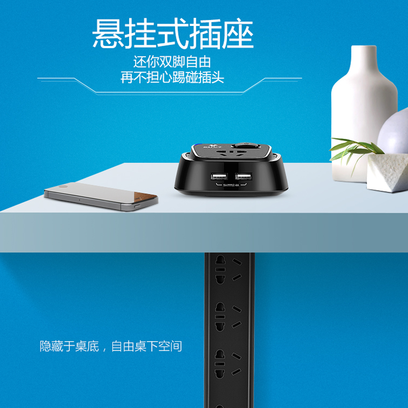 Bull socket table hole with USB socket desktop plug board row plug computer invisible plug board wired 1 8 meters U2050