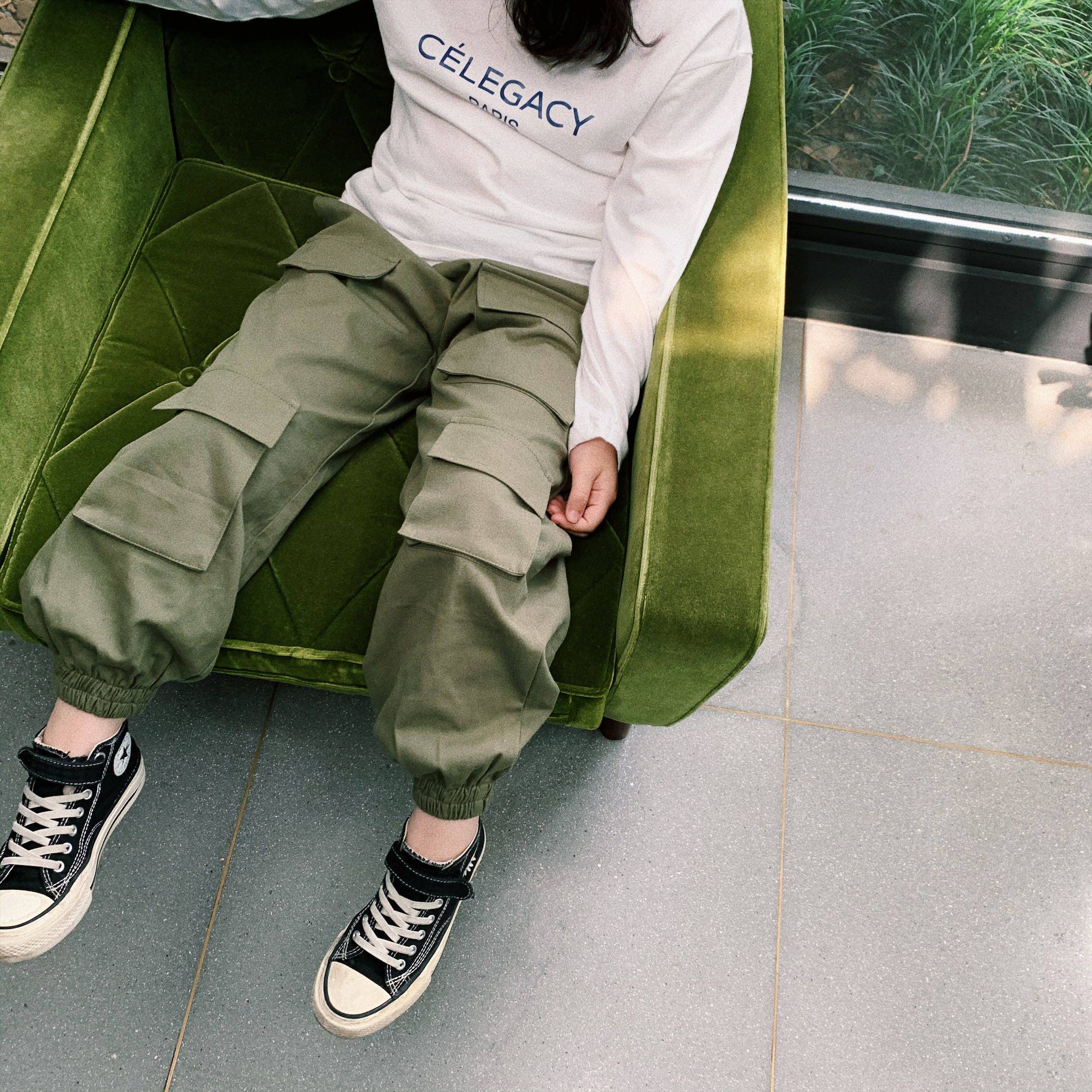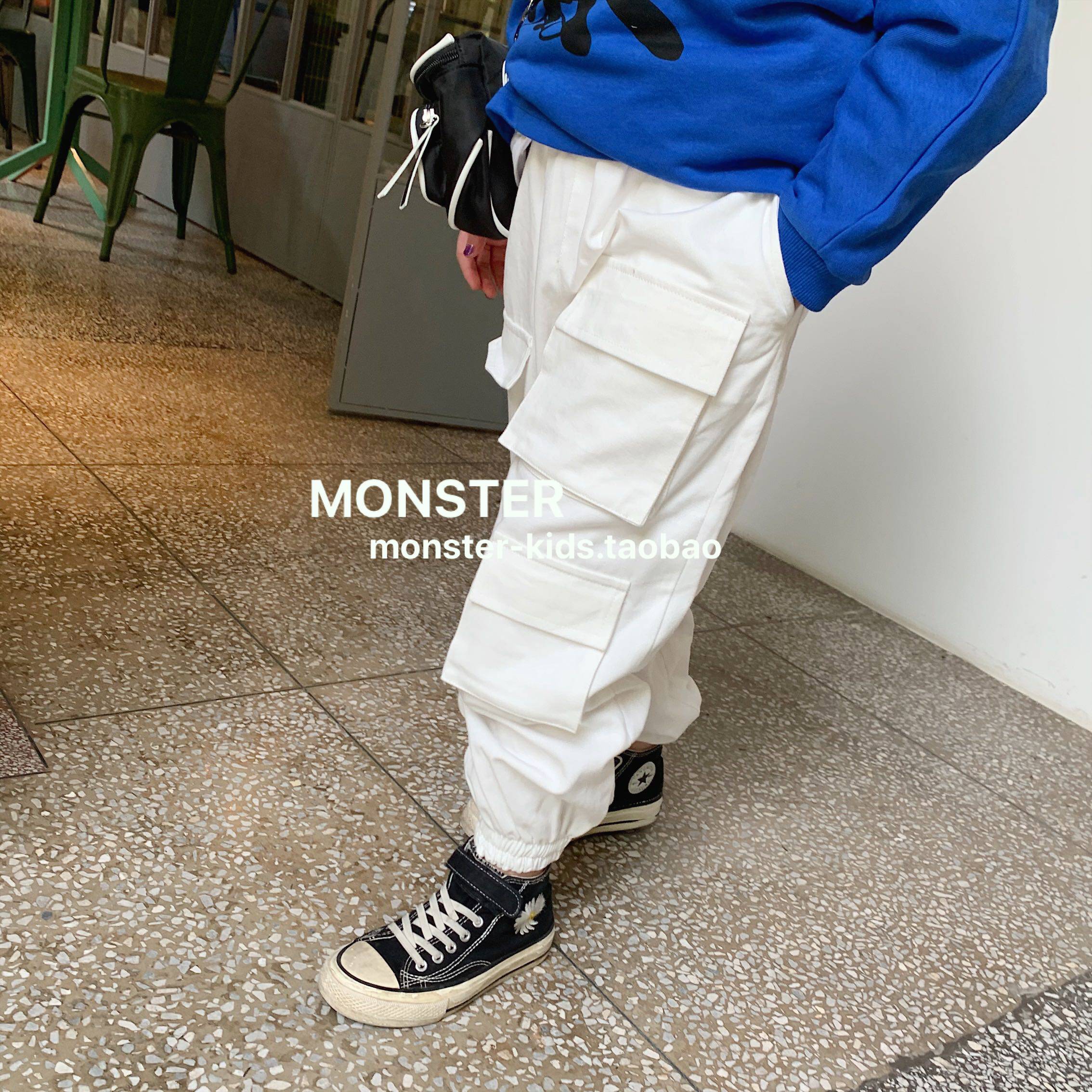 monster little monster boys and girls Hong Kong style overalls pocket casual hip-hop trendy pants