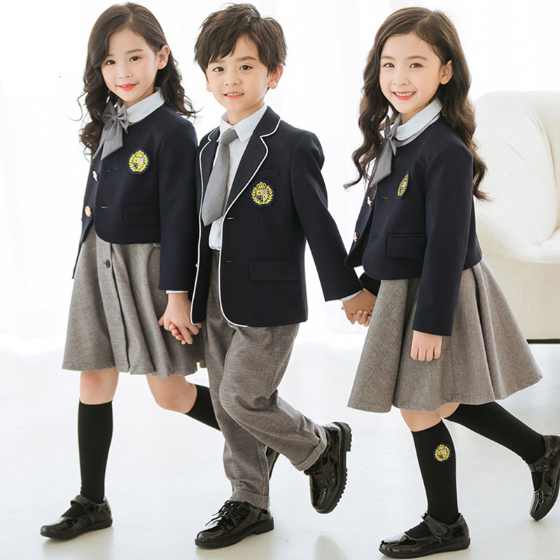 Primary school uniform suit spring and autumn kindergarten clothing in autumn and winter clothing of children's English wind suit three pieces