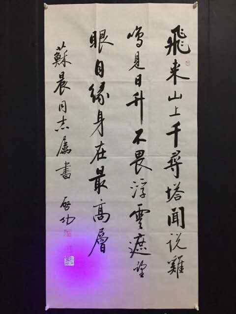 Qigong boutique calligraphy and painting with collection certificate with purple light anti-fake size 50 * 100c m
