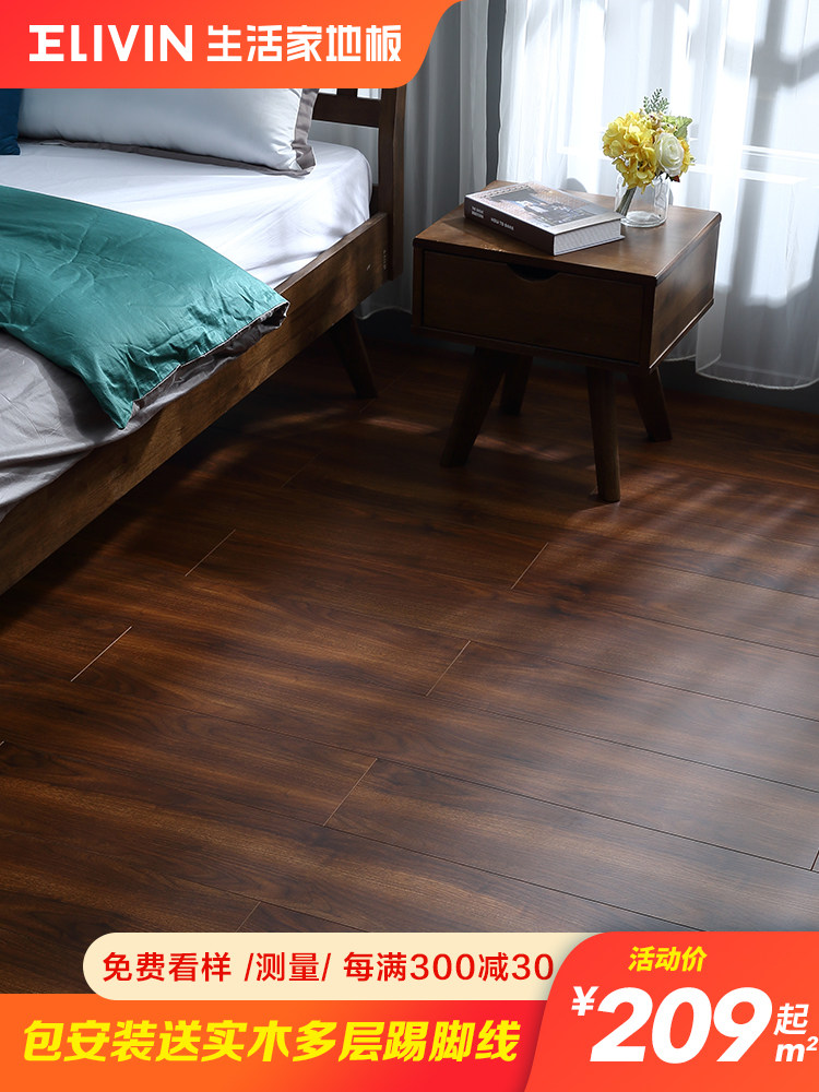 Living floor solid wood flooring lock new drilling wood flooring manufacturer direct selling feeder line