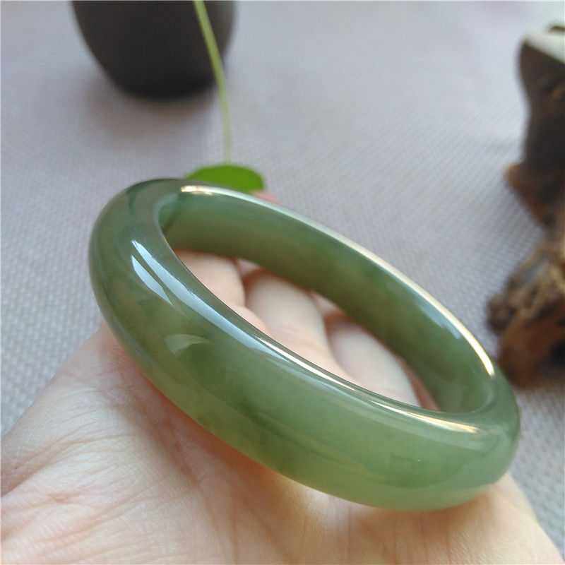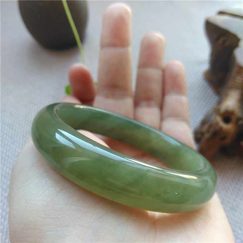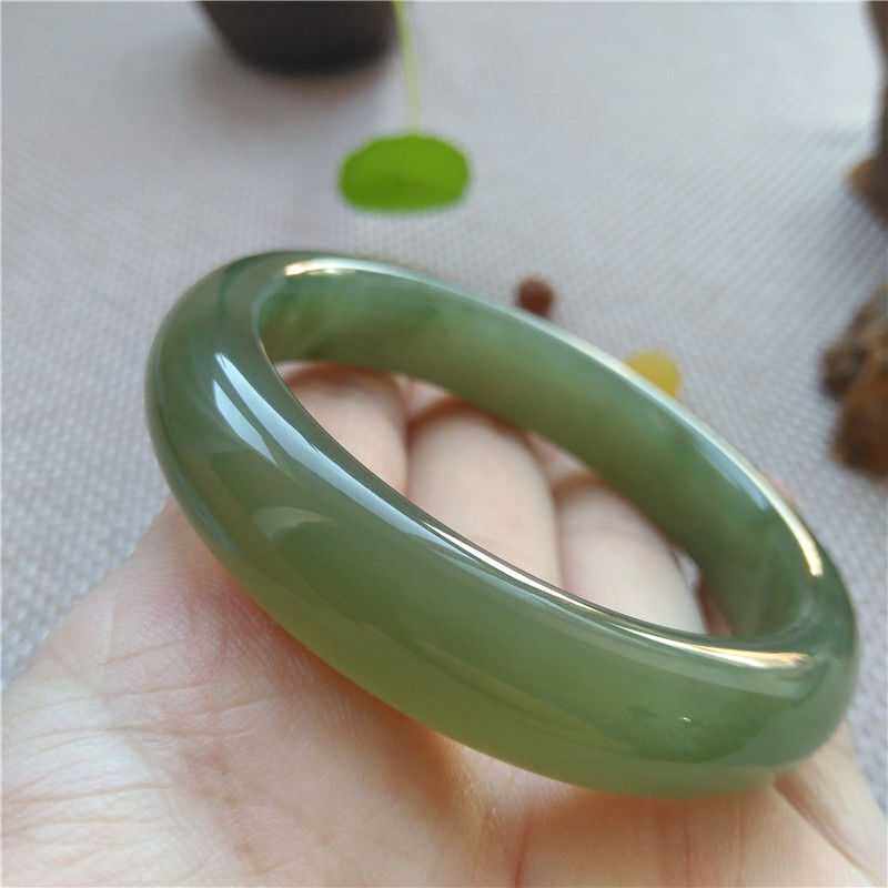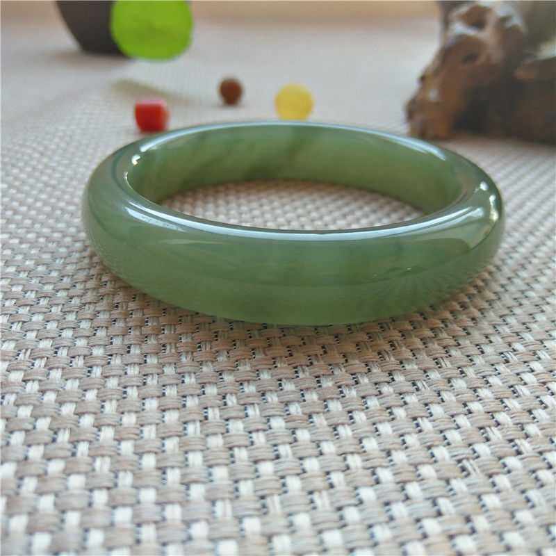 Xinjiang Hetian jade bracelet Oil cyan jade bracelet Clear water color thick strip tire bracelet Jasper green bracelet Jade bracelet