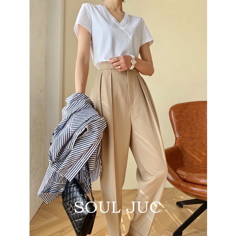 SOUL JUC worsted wool texture suit pants high waist nine points tapered pants slim cigarette pants women's pants