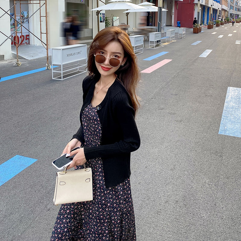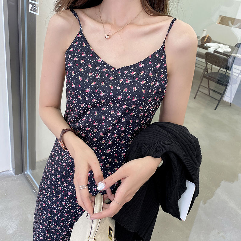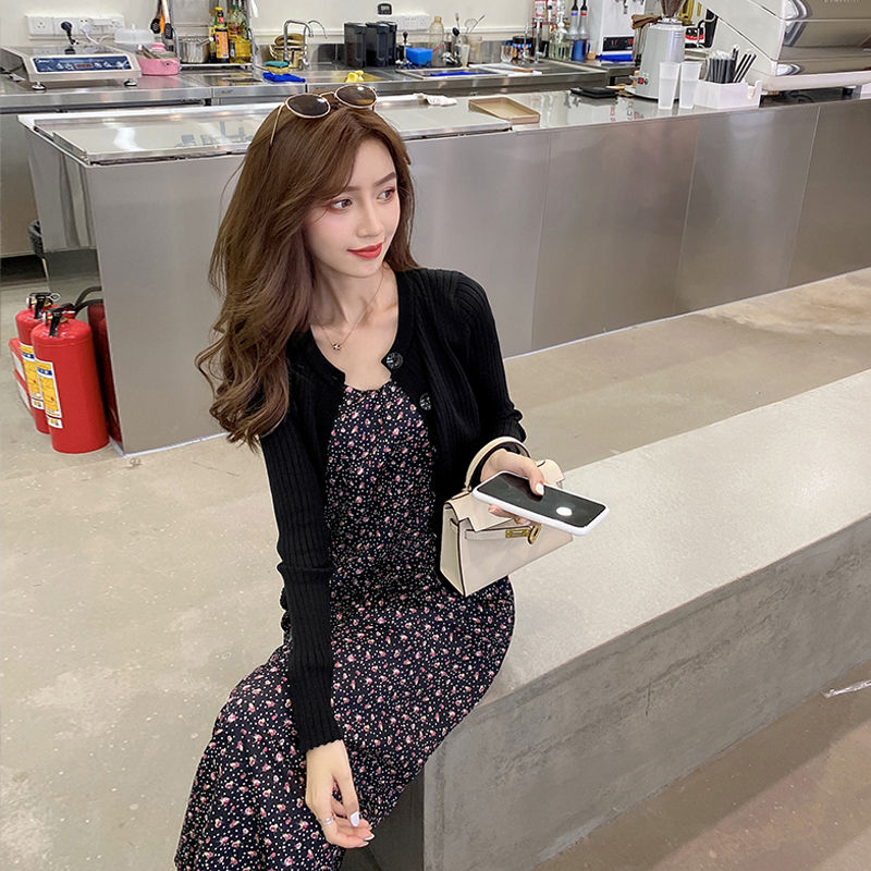 Light cooked wind new floral suspender dress long women's two-piece suit 2021 fat mm thin autumn outfit