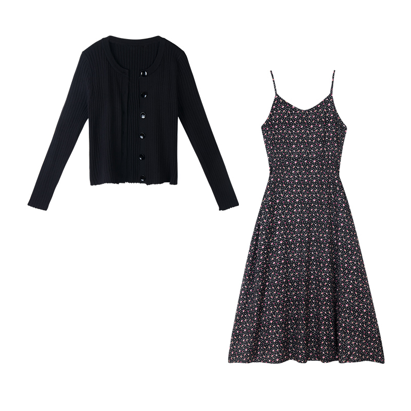 Black Sundress (one piece) Black sweater (one piece) Sweater Sundress skirt (set)