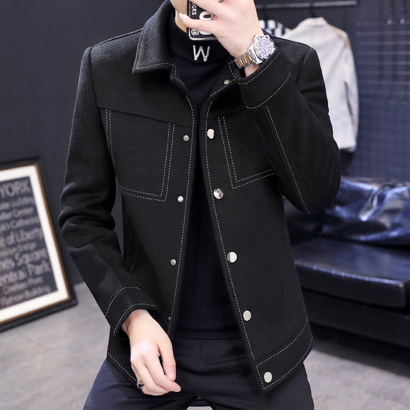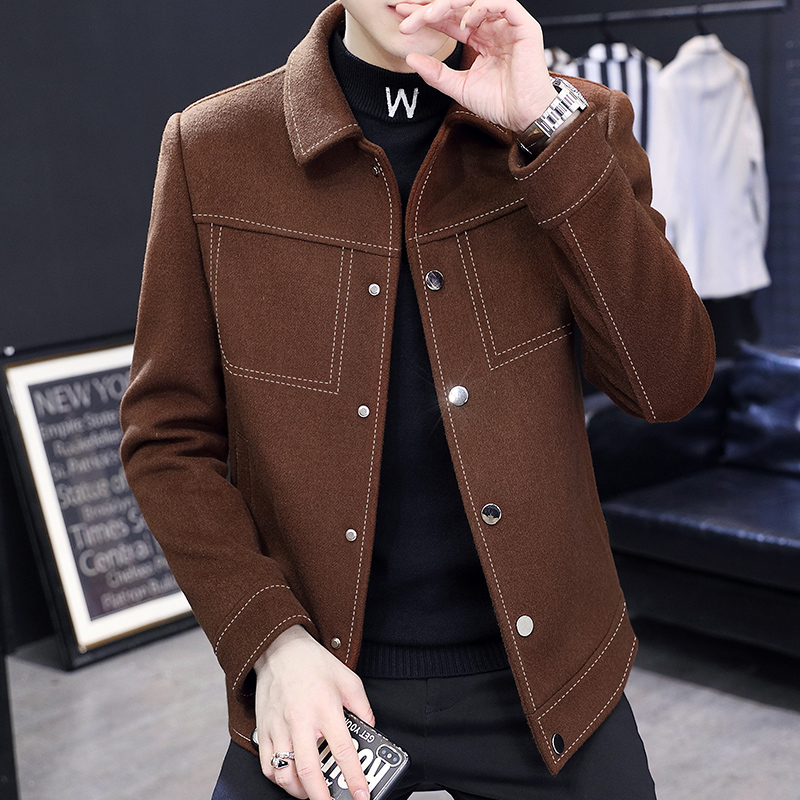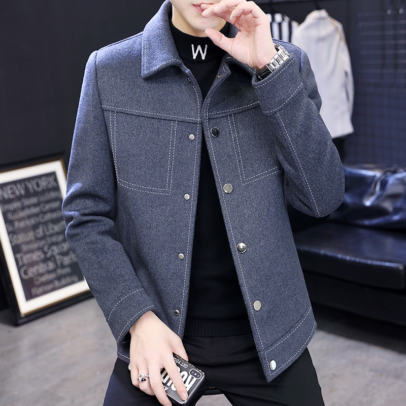 Men's Wool Coat Short Autumn and Winter Cotton Thick Korean Style British Style Windbreaker Trendy Wool Wool Coat