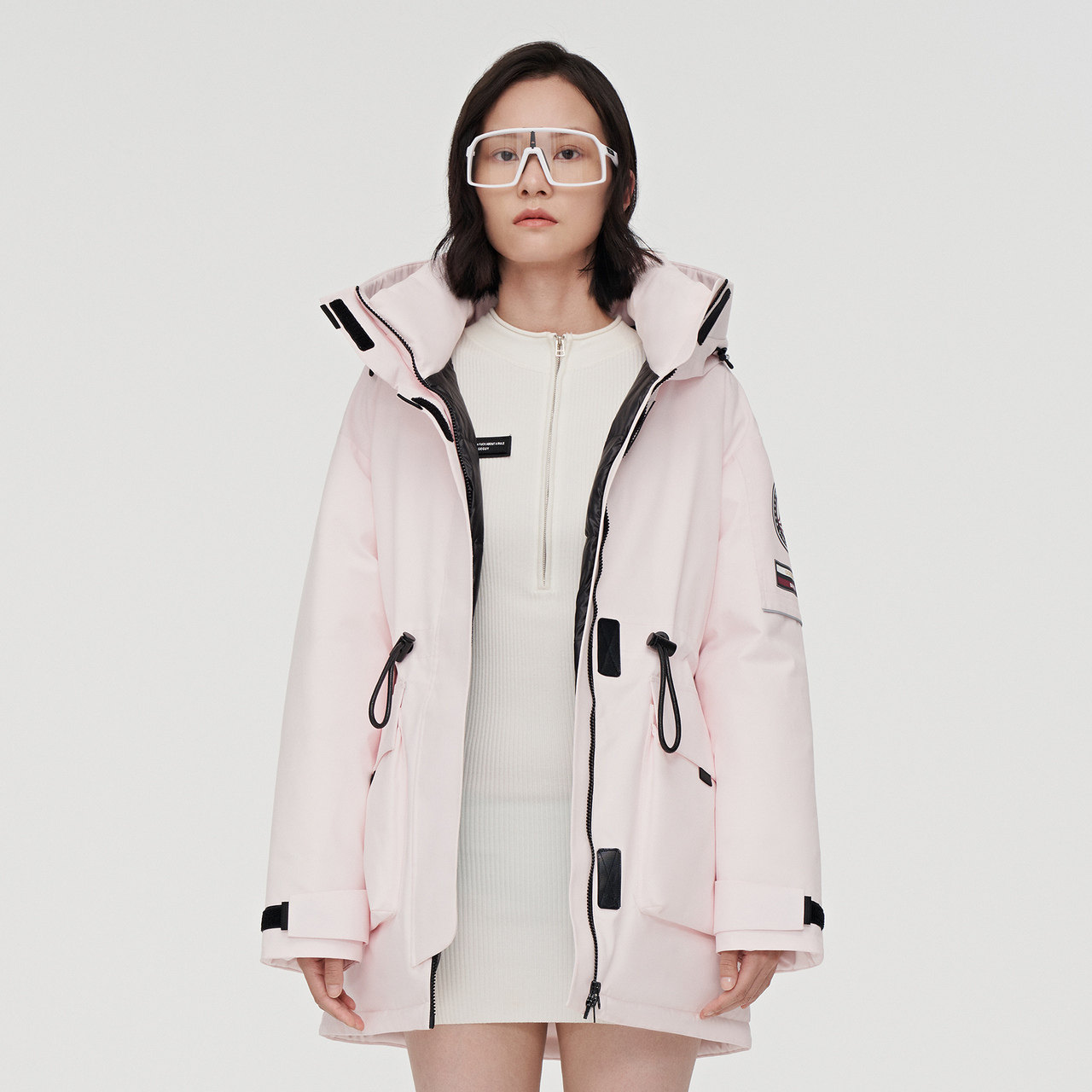 Poddon 2021 new down clothes lady goose down frock Fashion Gradual Layer Color Tide Medium Long Version Warm Jacket