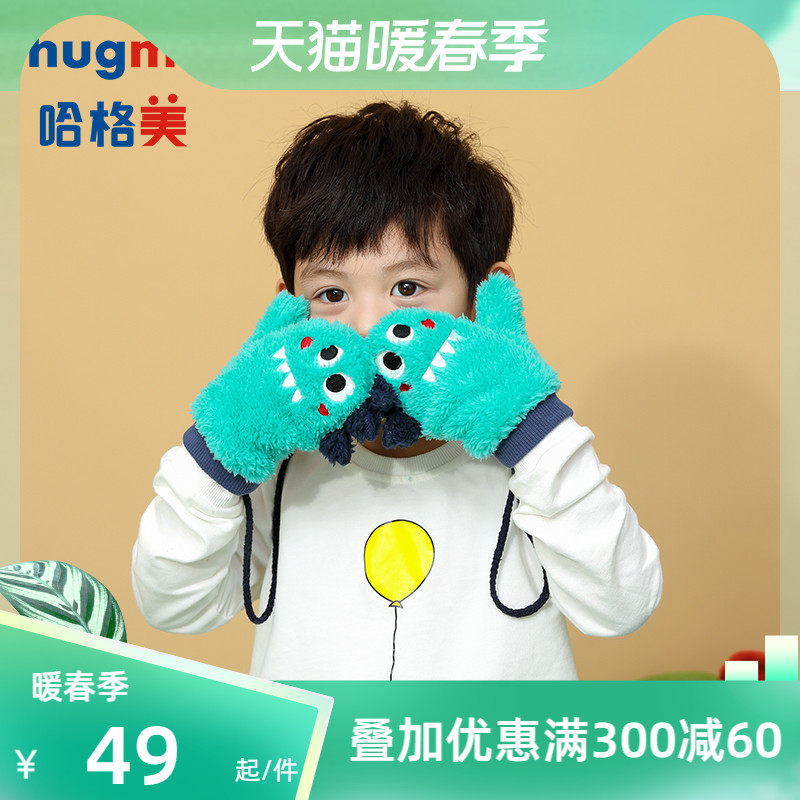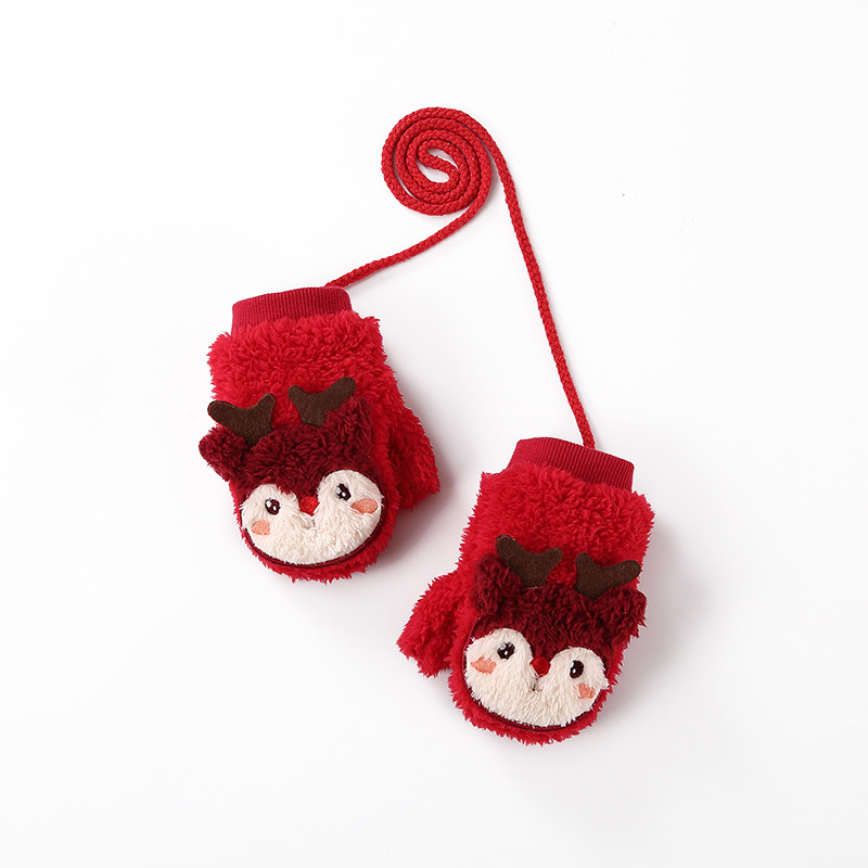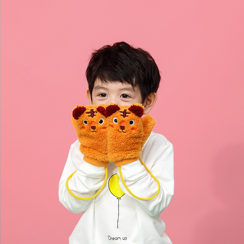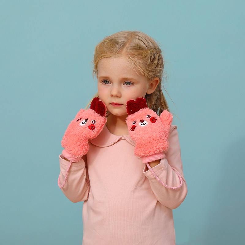 hugmii kids plush gloves boys fall winter kids warm lanyard gloves baby girl cute coral fleece