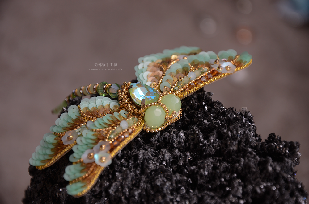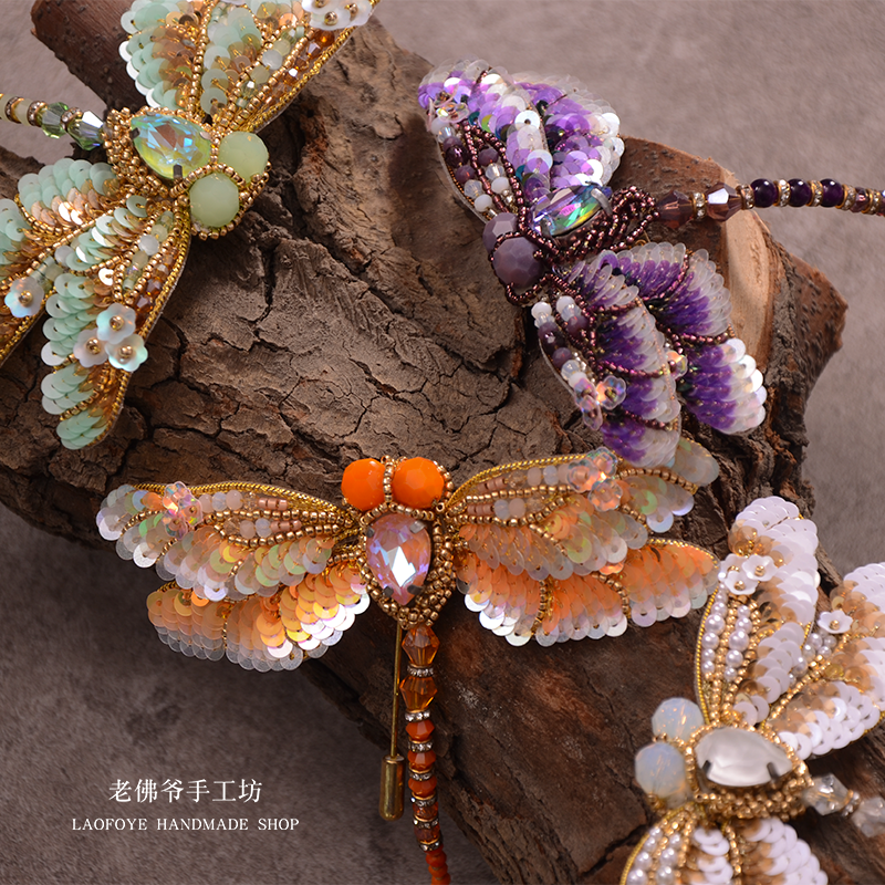 (dragonfly) Old Buddha's seventh issue of French style embroidery class Material Baudigy Solid Nail Pearl Insect Brooch Tutorial
