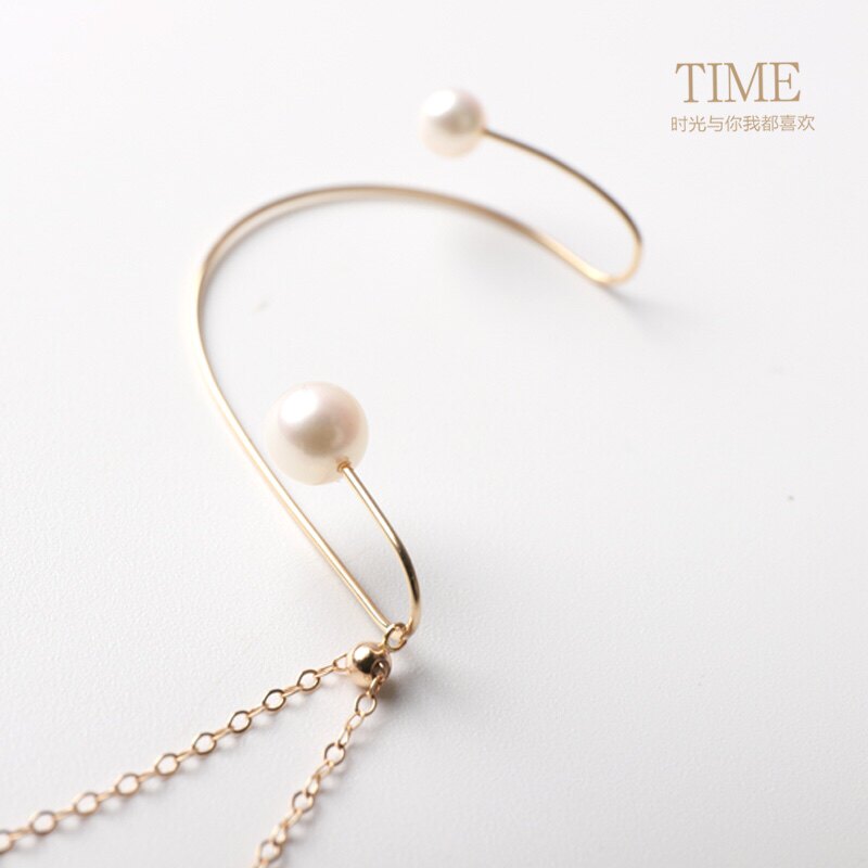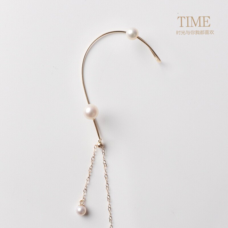 TIMEstudio original without ear piercing pearl ear clip ear hook long version chain ear hook earring designer