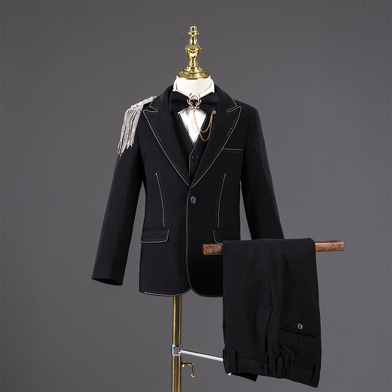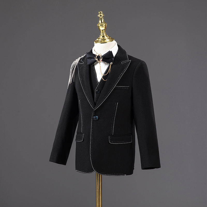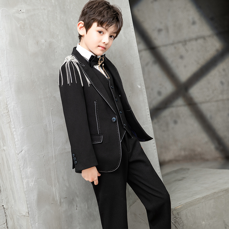 Boys suit suit children's dress black catwalk British style flower girl small suit host piano performance costume