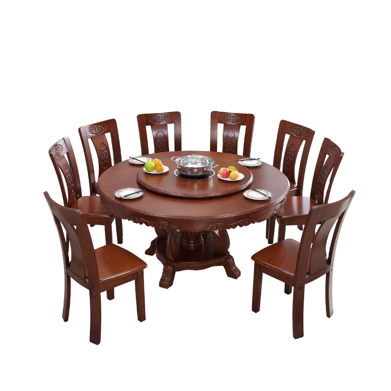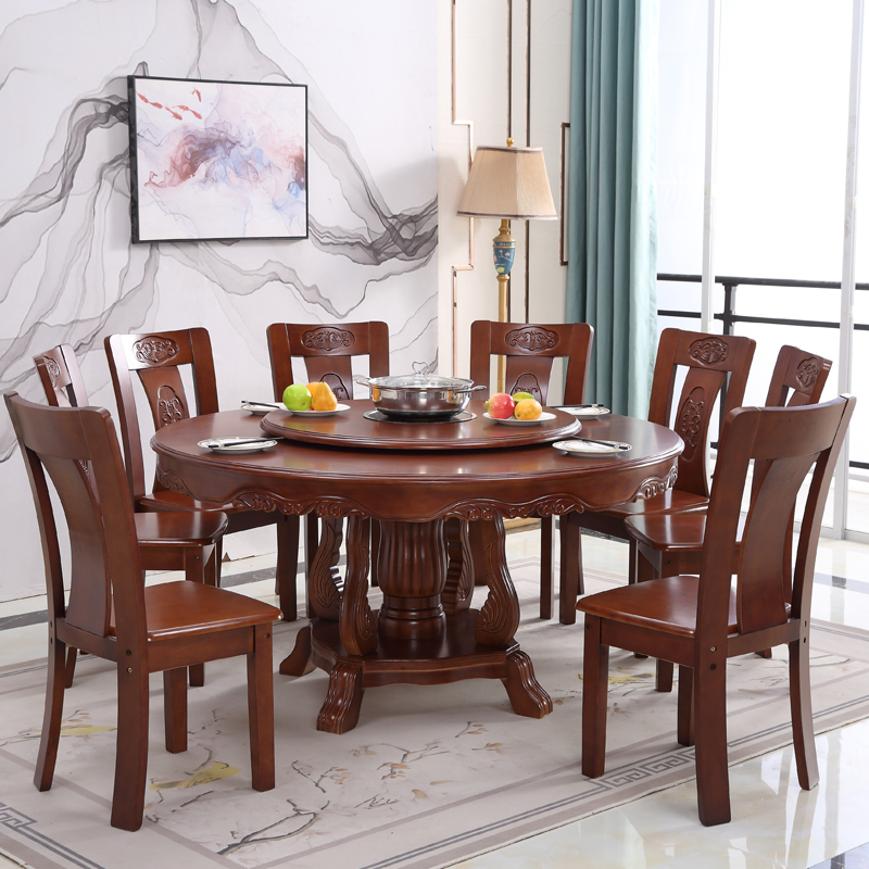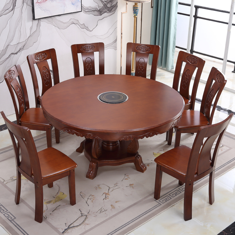Large round table solid wood oak dining table and chair combination Chinese style antique hotel restaurant large round table dining table can be equipped with induction cooker