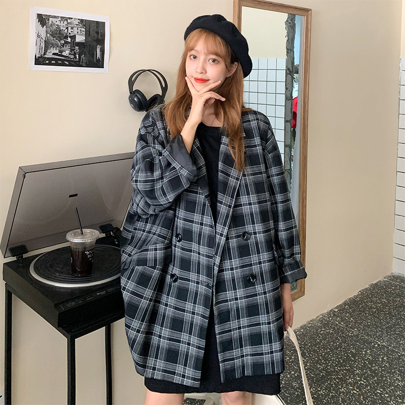 Large size women's fat mm plaid loose casual fried street suit jacket women's 200 catties autumn and winter all-match small windbreaker