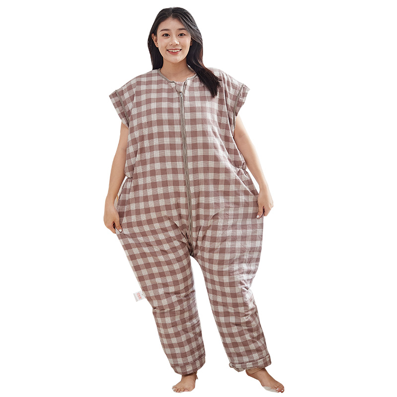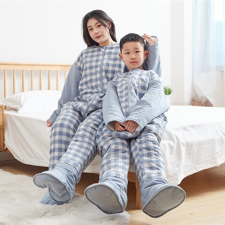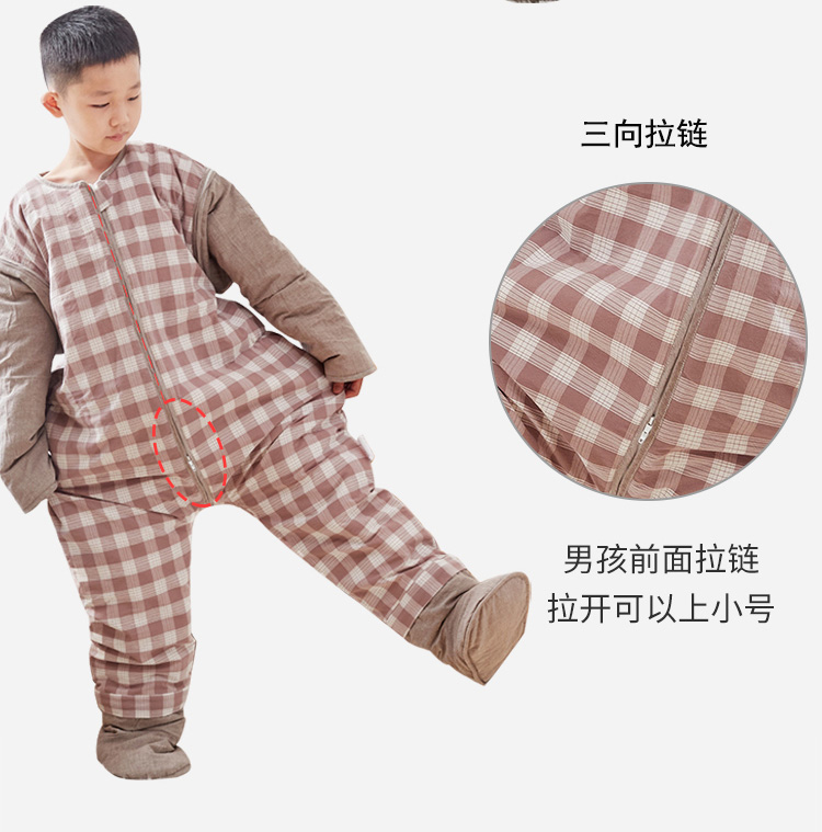 Adult sleeping bag Autumn and winter student big child cotton spring and autumn plaid sleeve sleeve foot cover Kindergarten anti-kick is greatly widened