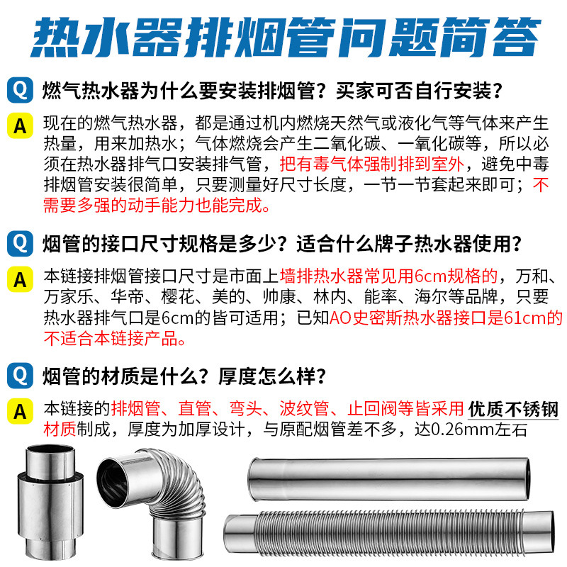 Gas water heater smoke exhaust pipe exhaust pipe thickened lengthened stainless steel 6cm lengthened flue pipe smoke pipe fittings