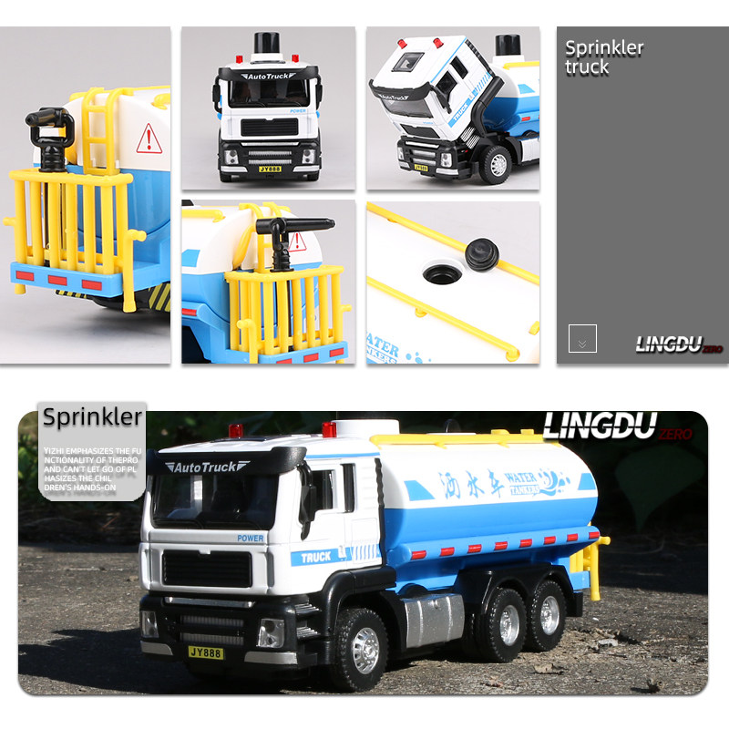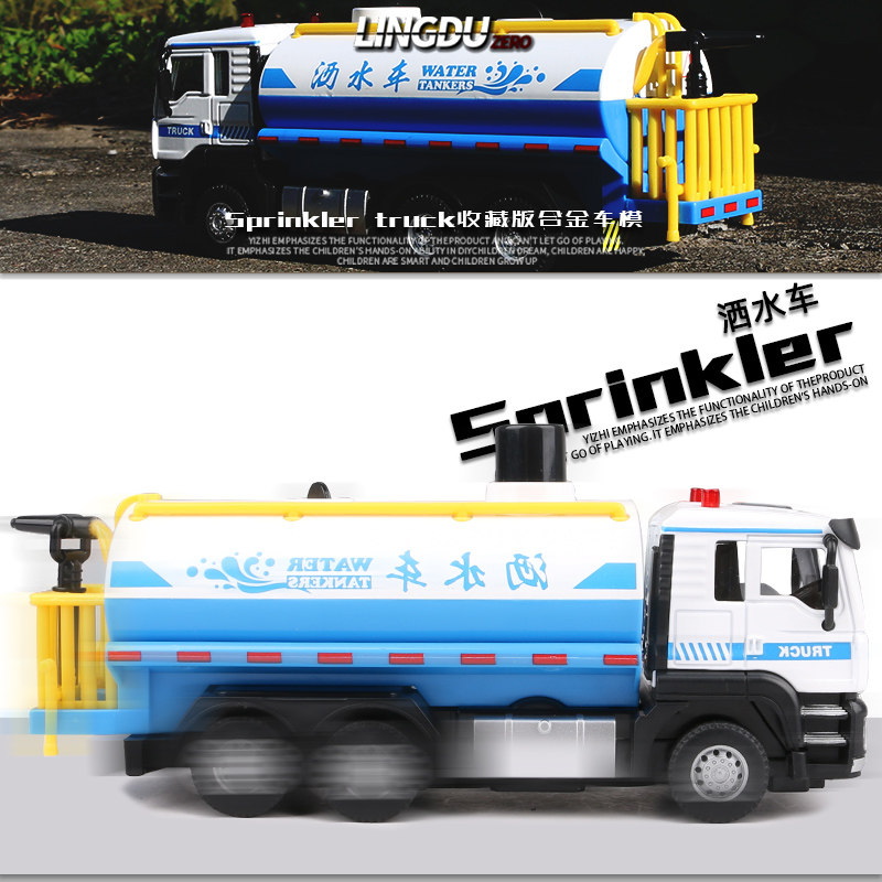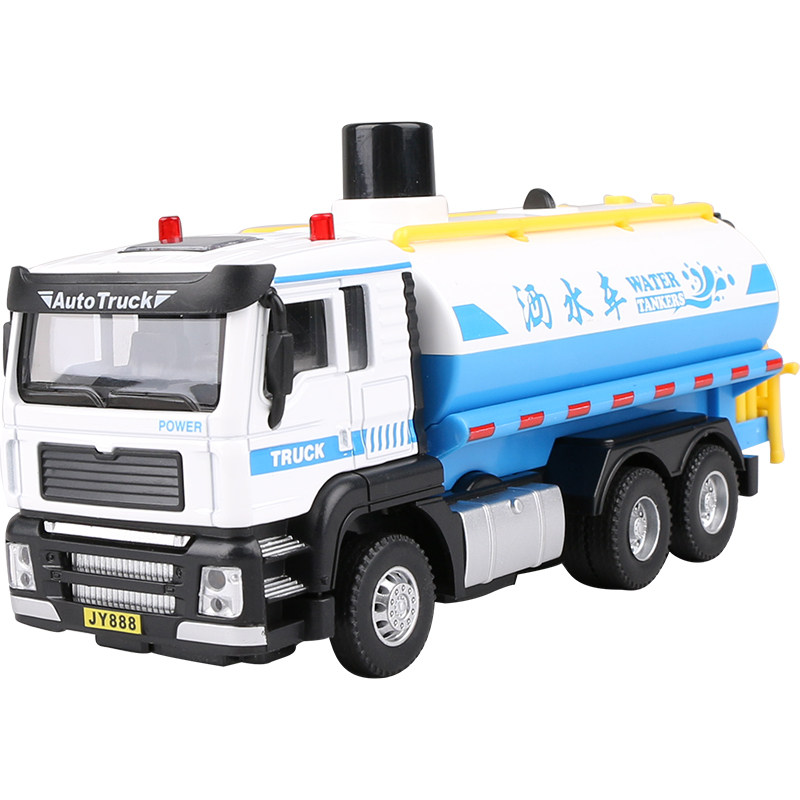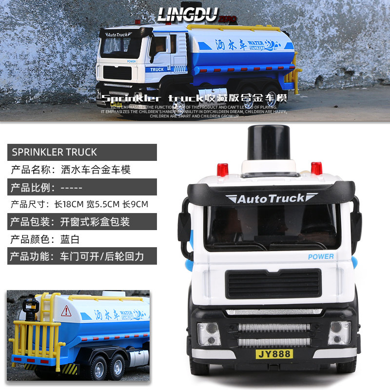 Alloy sprinklers model of water spray sanitation car Boy audible and visual back-power toy car children emulating small cars