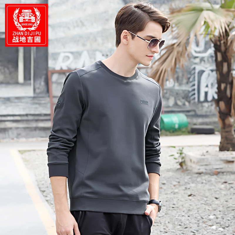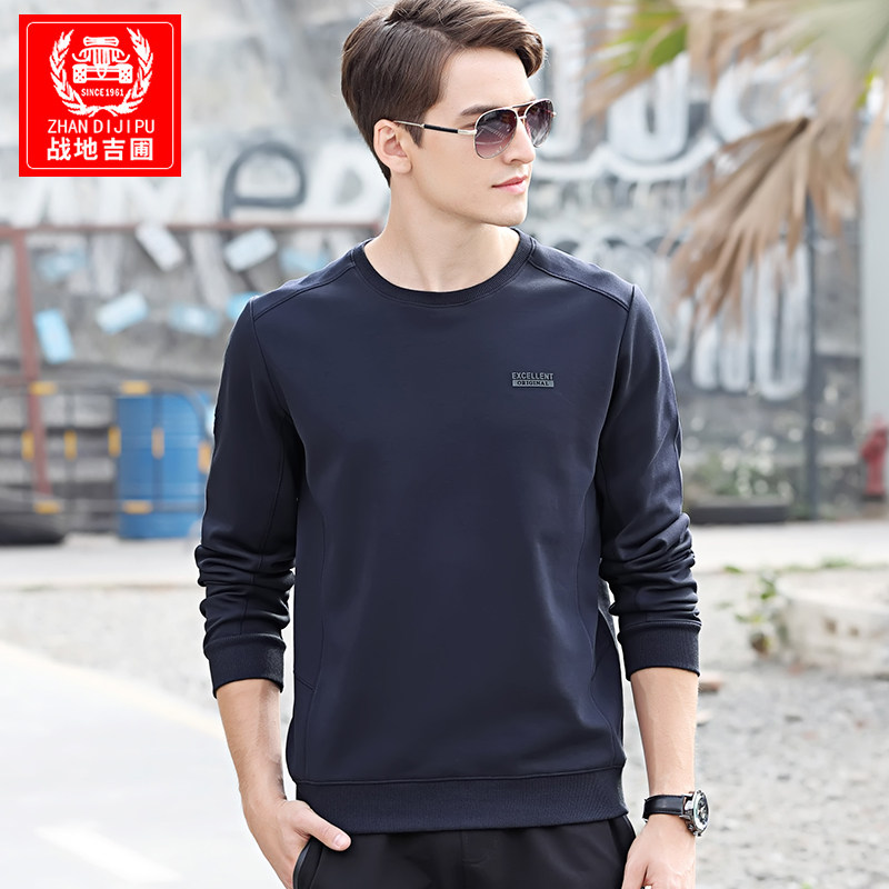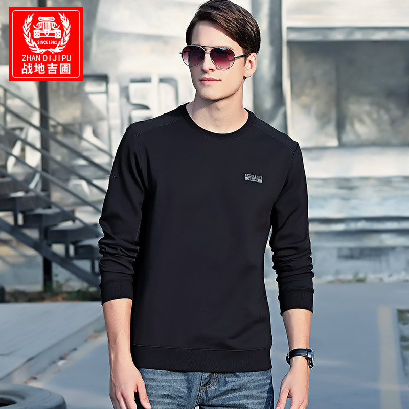 Long-sleeved T-shirt men's round neck solid color loose cotton t-shirt tide men's clothing autumn casual top spring new thick cotton T-shirt