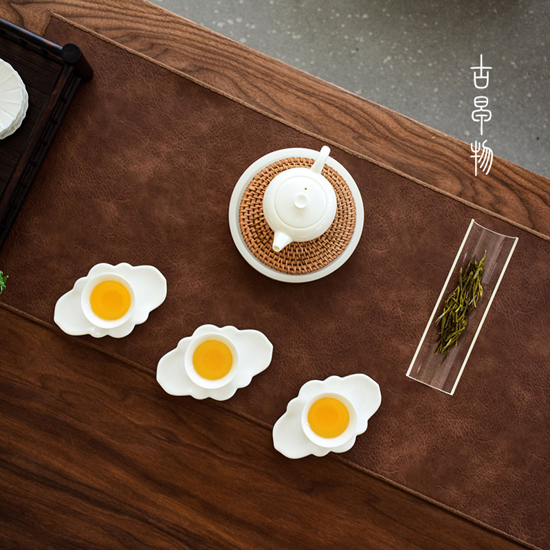 Ancient Early Things goat fat jade white porcelain anti-scalding cup cushion home minimalist tea road spare parts Tea drinking cup thermal insulation mat tea cup To-Taobao