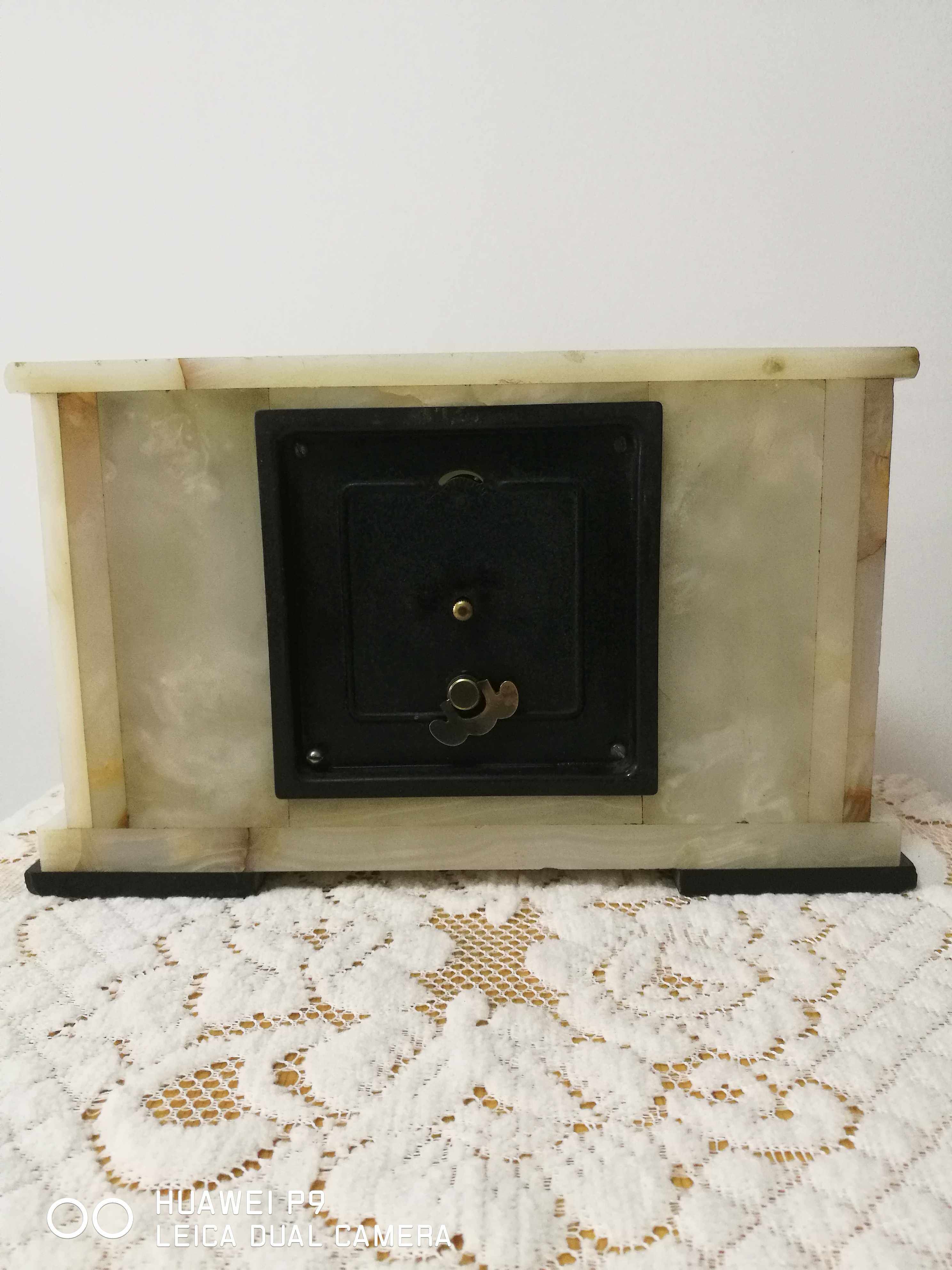 Foreign-made 8-day jade table clock marble mechanical winding watch Western nostalgic collection second-hand vintage objects