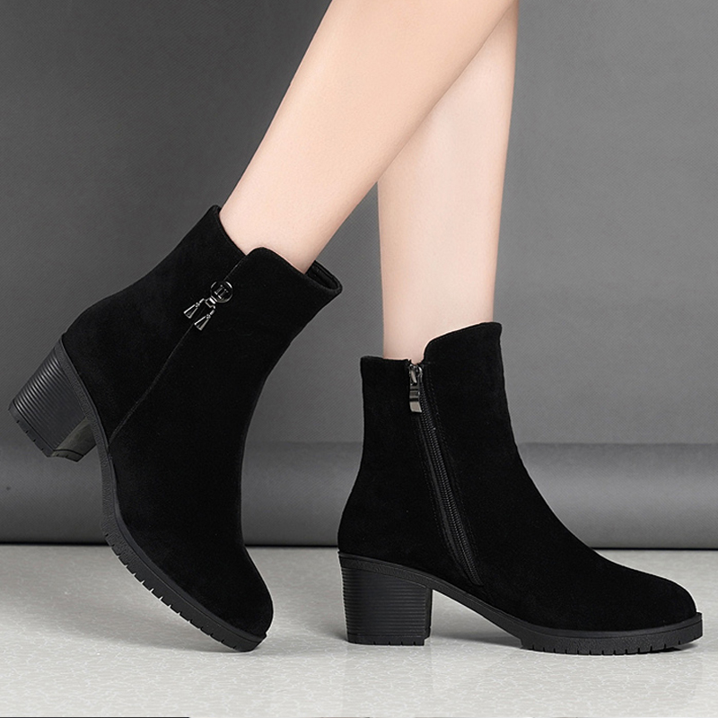 Dienna Thyme Break Code Clear Cabin Genuine Leather Frosted Boots Children Plus Suede Short Boots High Heel Martin Boots Autumn Winter New Single Boots
