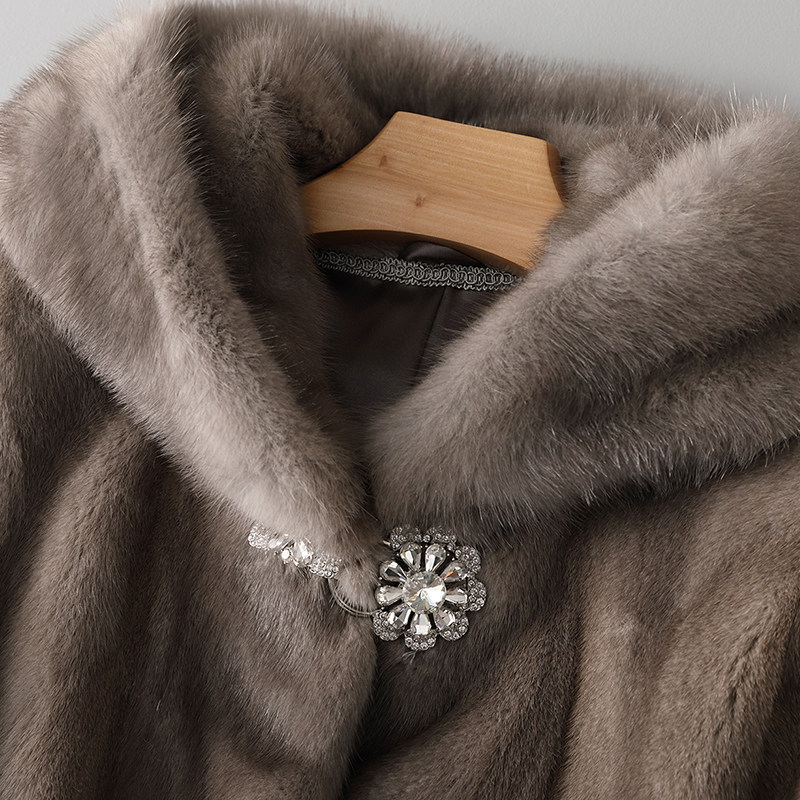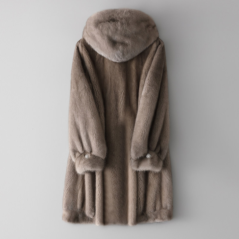 Mink fur coat women's mid-length version 2021 new imported mink fur fur coat hooded ZD7368