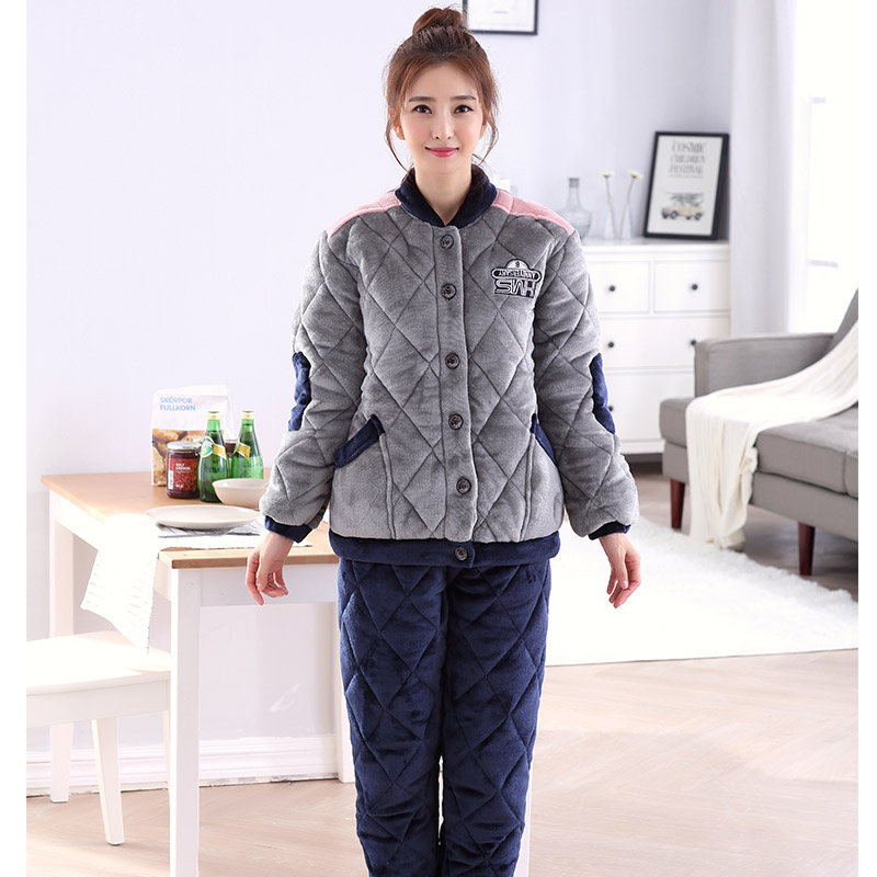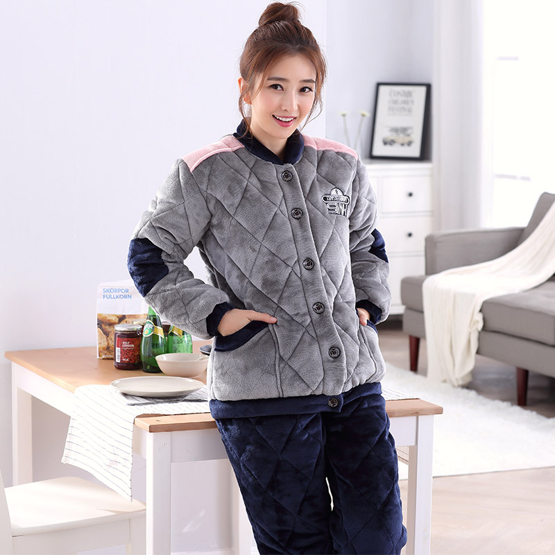 Pajamas Woman Winter Warm Triple Layer Clip Cotton Plus Suede Thickened Large Code Coral Suede Lady Autumn Winter Style Home Suit Suit-Taobao