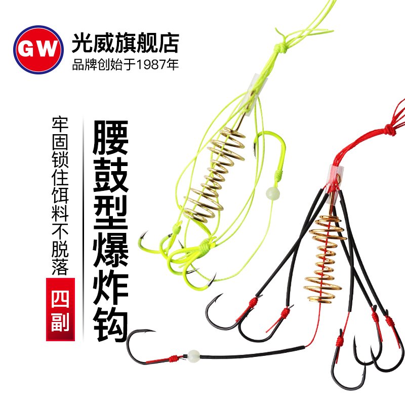 GW morning lake explosion hook anti-winding thin waist drum GW morning lake explosion hook thin waist drum fluorescent hook