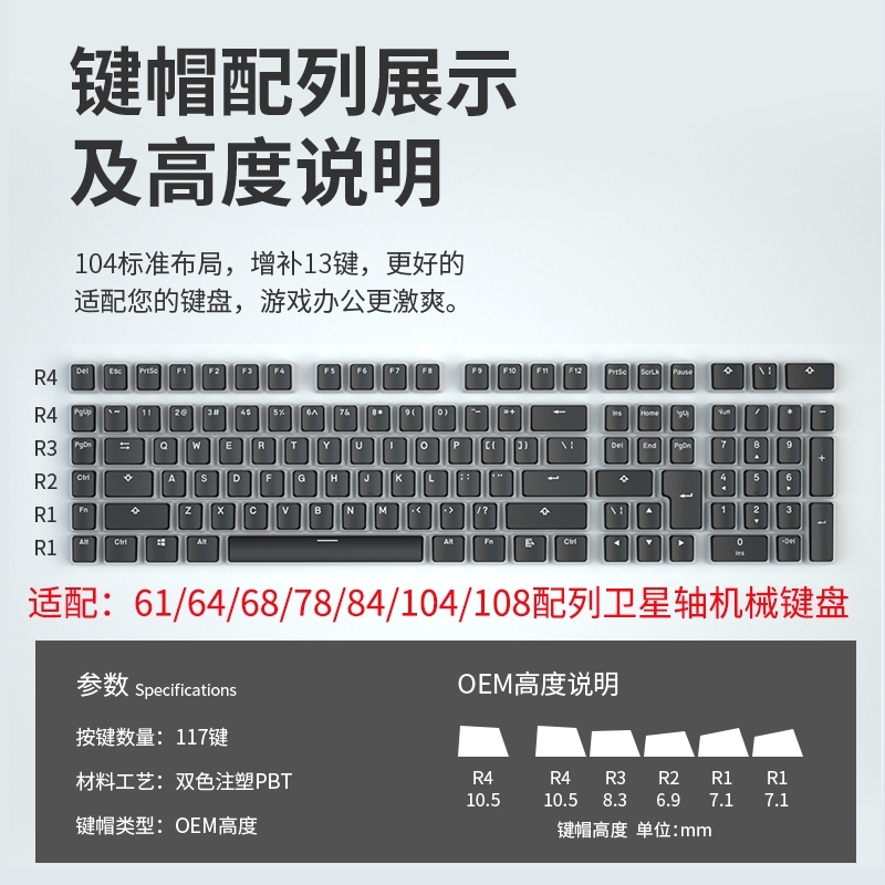 Closed double leather milk PBT small set of 117 key light transmission keycap bicolor pudding high light transmission mechanical keyboard keycap